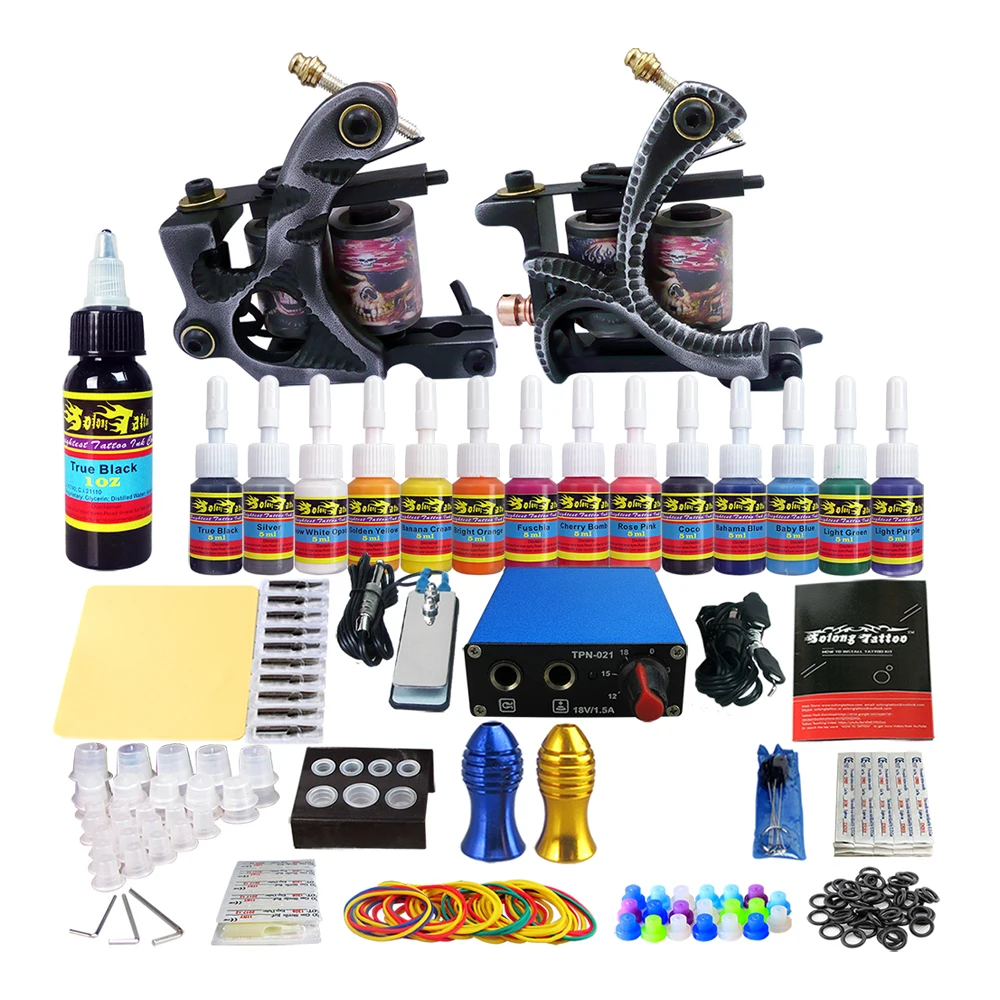 2 1 Professional Digital Tattoo Power Supply 3 1 Top foot pedalSwitch 4 1 Clip-cord 5 1 Set 14 bottles full colors tattoo ink 5mlbottle 6 1 bottle True Black Tattoo Ink 1oz Bottle. 3 Gun Tattoo Kits. Solong Tattoo provide all products at factory-direct wholesale priceand all buyers will get our best serviceWe recommend.